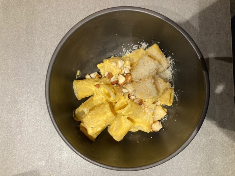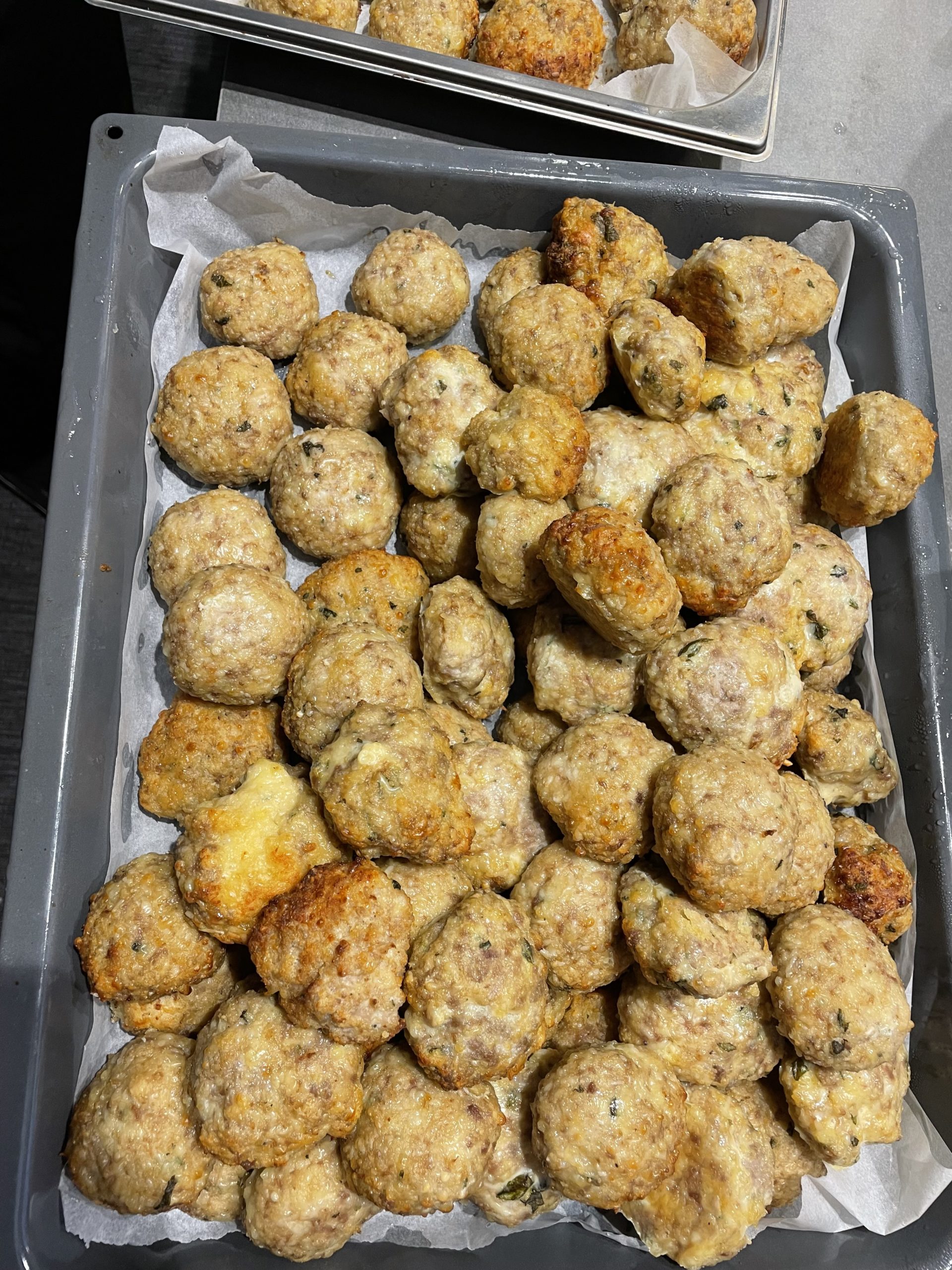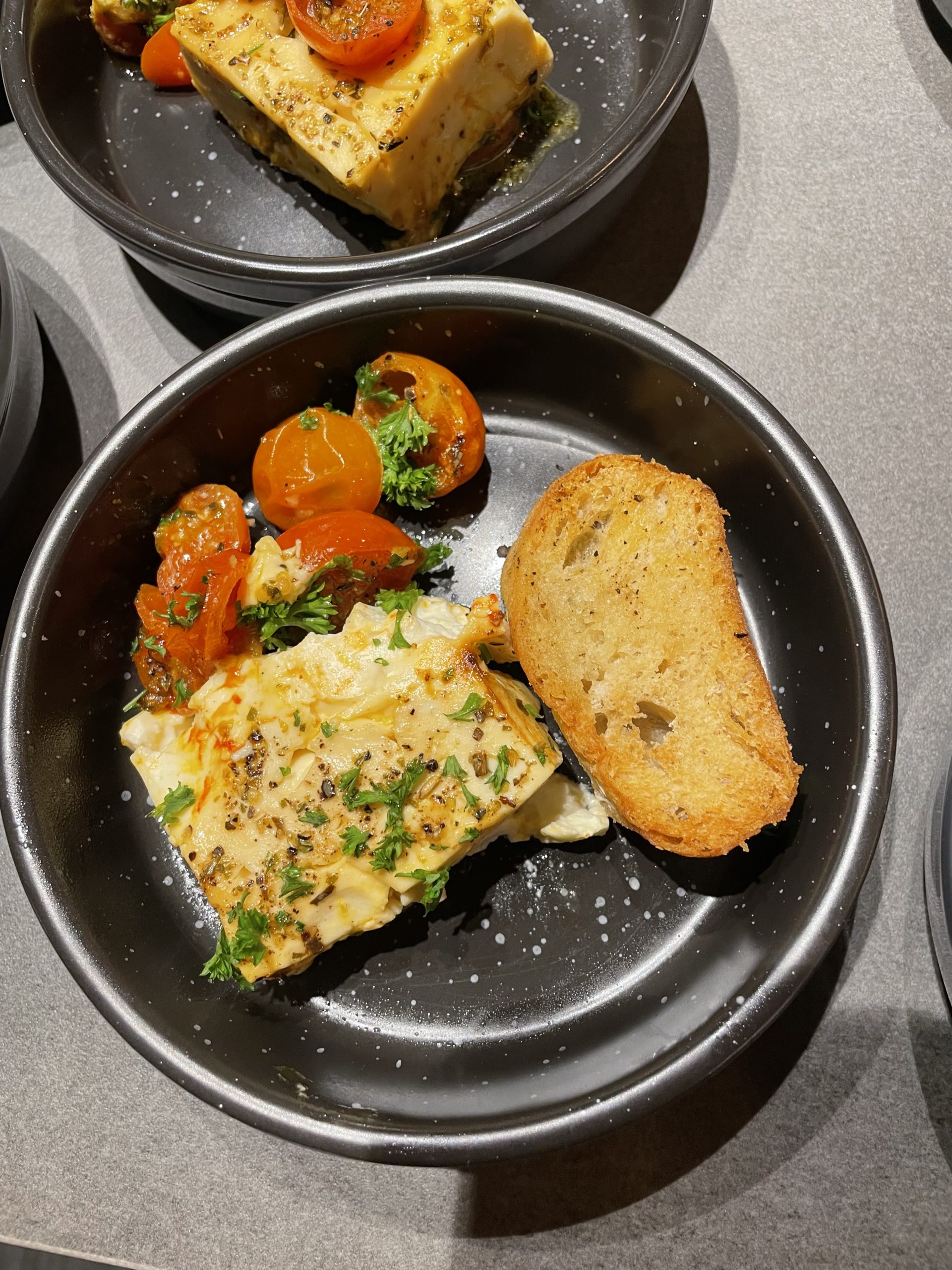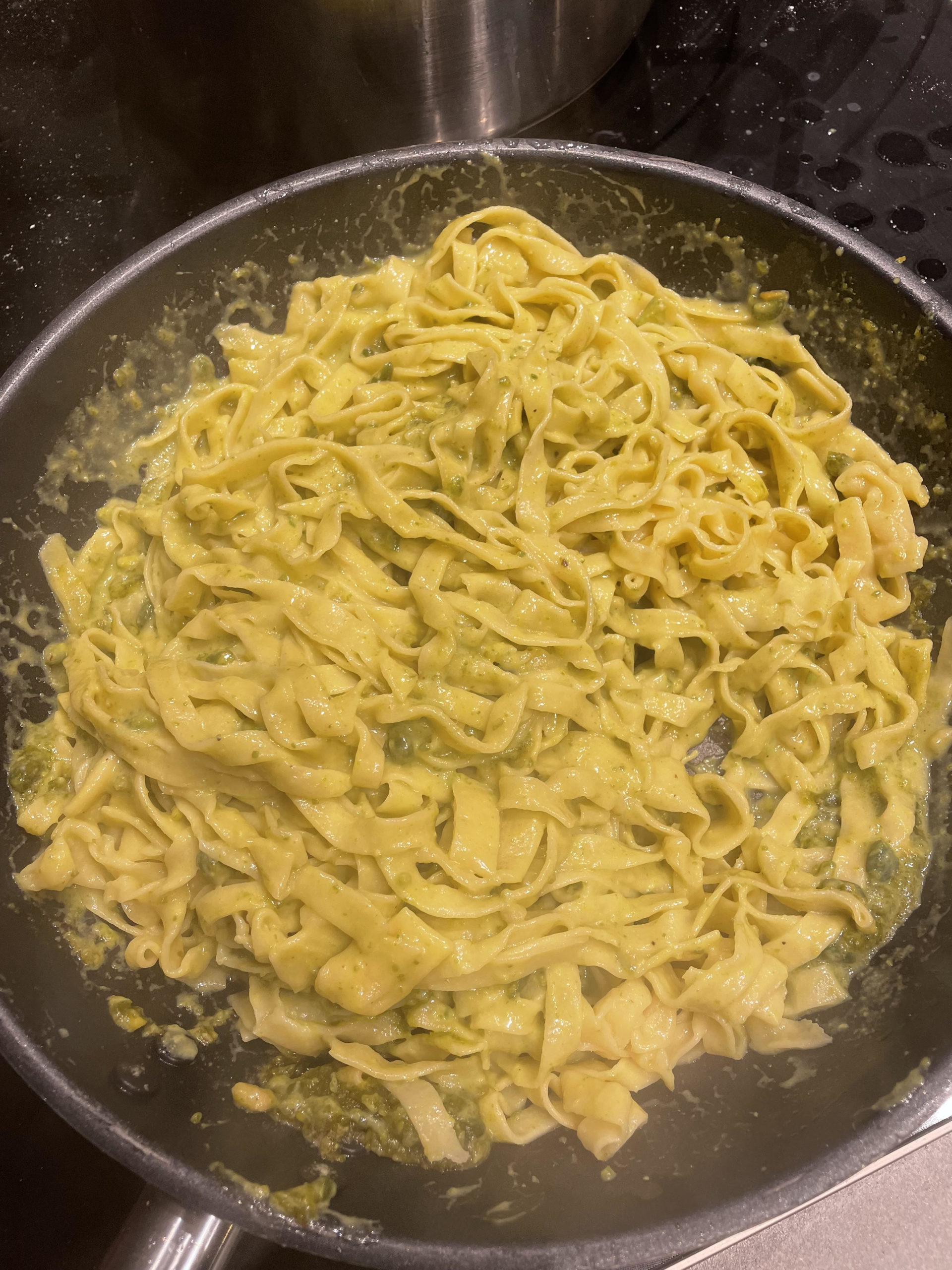 – Plat principal : polpette à l’ail, mozzarella et basilic et tagliatelles fraîches au pesto de pistaches